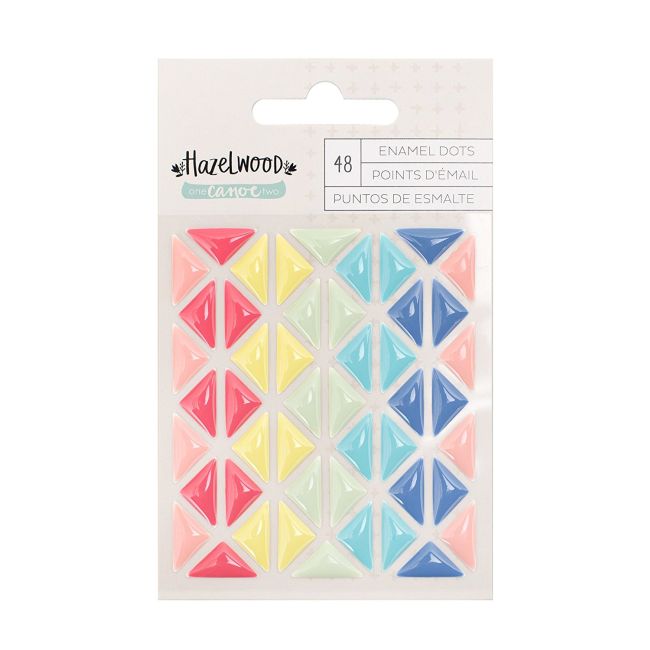 1canoe2Hazelwood Self Adhesive Enamel Dots: Triangles. The perfect addition to any paper crafting project! This package contains fortyeight enamel dots in six colors on one 31/4x23/4 inch backing sheet. WARNING: This product contains chemicals known to the state of California to cause cancer, birth defects or other reproductive harm. Do not mouth or chew. Imported.