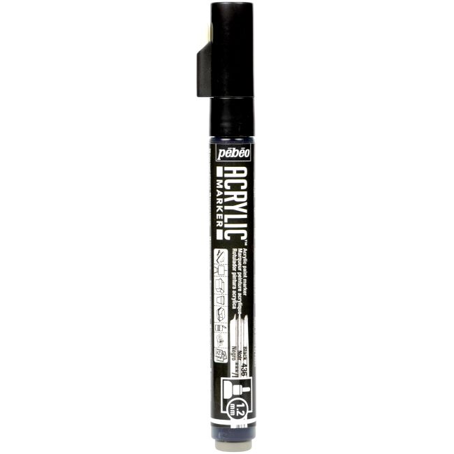 Markers contain an acrylic water and pigment-based paint. They offer opacity, high pigmentation and permanence, it is an acrylic paint tool ideal for all types of applications. This package contains one 1.2mm fine tip acrylic marker. Conforms to ASTM D 4236. Comes in a variety of colors. Each sold separately. Imported.