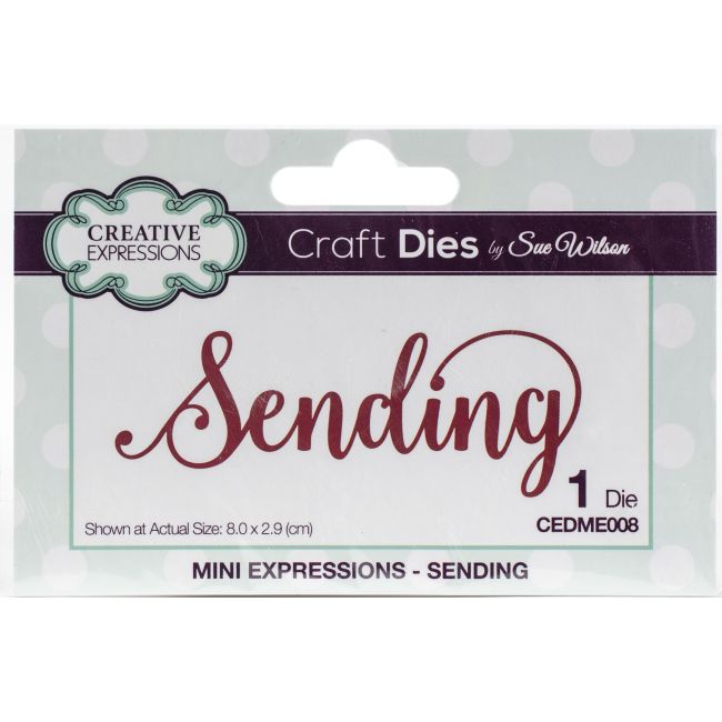 Craft Dies by Sue Wilson are an elegant collection of high quality steel designs designed to co-ordinate with each other. Dies can be used with most leading die cutting machines (sold separately). This package contains Mini Expressions - Sending: One 3.25x1.25 inch metal die. WARNING: May contain items with sharp edges. Handle with care. Imported.
