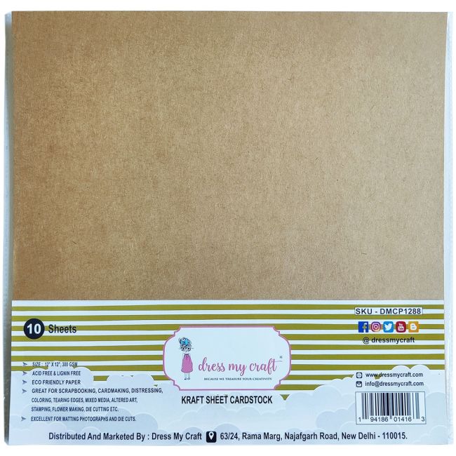 Dress My Craft Cardstock 300gsm 12 inch X12 inch 10 Per Pkg -Kraft